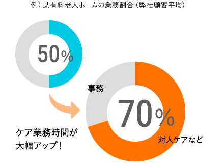本業(ケア)に注力でき、介護の質の向上、顧客満足度の向上につながります。