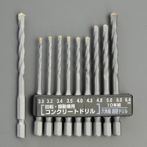 3.0- 6.4mm/10本組 六角軸ドリル