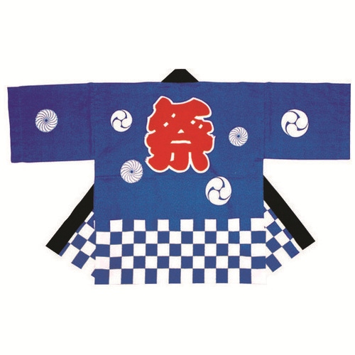 祭袢天 市松 青 大人L