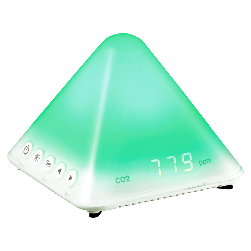 「CO2モニター AT-C01」は、室内のCO2濃度をリアルタイムに測定し、LEDの色で換気のタイミングをわかりやすく知らせる環境管理デバイスです。NDIR(非分散型赤外線吸収法)センサーを搭載し、経済産業省が扱いやすいと取り上げる仕様に準拠。CO2濃度が上昇すると、LEDが緑・黄・赤の順に変化し、遠くからでも視認可能なピラミッド型デザインを採用しています。初期値は800ppmまでが緑色、1000ppmまでが黄色、1000ppm以上が赤色です。環境に合わせてしきい値(CO2濃度値)を調整することができます。温度・湿度の表示機能や、点灯モードの切り替え(エコモード・オフモード)にも対応。オフィス、店舗、教室、医療・介護施設など、人が集まる空間での感染症対策と快適な環境づくりに貢献します。【商品の詳細】