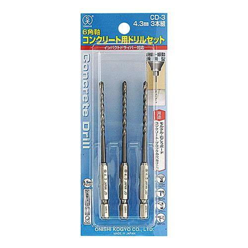 4.3mm/3本組コンクリート用ドリル(六角軸)