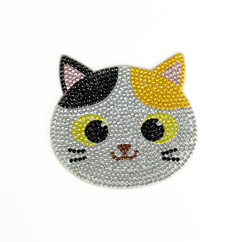 「ダイヤモンドフィックス」のかわいい猫のコースターキット。ノリ付きキャンバスに専用ビーズを貼るだけなので、手芸初心者の方でも楽しみながら取り組んでいただけます。裏面にコルクシールを貼れば、コースターとしてお使いいただけます。
