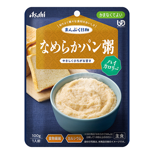 数種類の食材のうま味や香り、だしやエキスの風味を生かした、風味豊かな味わい食べづらくなった食材も、丁寧に裏ごして食べやすいなめらかさ食物繊維、カルシウム配合1袋で110kcal以上が摂れる、ハイカロリーでなめらかなパン粥です。やさしい甘味が広がり、最後までおいしくお召し上がりいただけます。真っすぐ切れるミシン目入りレトルトパウチ。