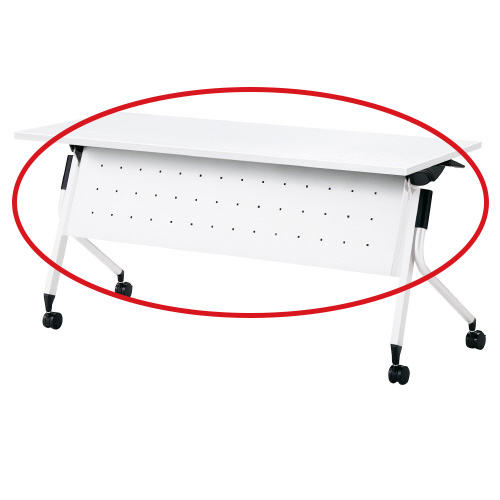 「Linello(リネロ)3」フォールディングテーブル専用オプションの幕板/幅1500mm用/ホワイト。スチール製なので市販のマグネット式OAタップやハブの装着ができ、スマートな配線処理が可能です。
