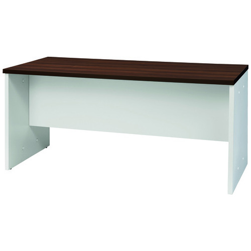 シンプルなデザインのシステムカウンター「CSカウンターⅡ」/H740mm(車イス配慮タイプ)。ローカウンターW1600mmタイプ。天板高さが740mmで、車イスでのご利用にも配慮したカウンターです。車イスのつま先が当たらないように、幕板を短くしています。※天板の奥行きは建築法などのガイドライン450mmには準じていません。天板カラーはミディアムウッド、本体はオフィスになじみやすいネオホワイトです。同シリーズの中棚付書庫型ハイカウンター、コーナーカウンターとの組合せで、機能的で落ち着いた来客空間を実現。