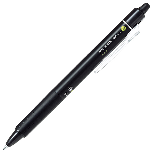 こすると消えるボールペン定番のノック式です。筆跡が乾いてから、本体後部のラバーでこすると色が消える!摩擦熱で色を無色化するため消しカスがなく、同じ場所に何度でも書き直すことができます。手帳・資料の書き込み・図面・校正などに便利にお使いいただけます。