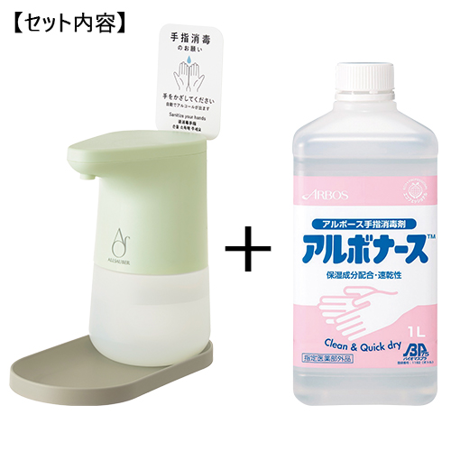 アルコール用オートディスペンサー「アルザウバー」と、手指消毒剤「アルボナース」のセットです。