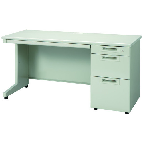 ラインナップ豊富なスチールデスクシリーズ「RJデスクⅡ」奥行600mm/片袖机(引出しDタイプ)幅1400mm/エルグレー。天板奥行は省スペースにも対応するコンパクトサイズの600mm。引出下段はB4・A4サイズの収納に対応。センタートレーに鍵は付きません。標準サイズの奥行700mmタイプもあります。