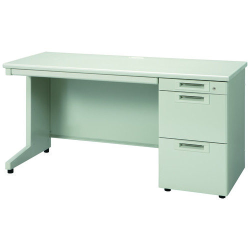 ラインナップ豊富なスチールデスクシリーズ「RJデスクⅡ」奥行600mm/片袖机(引出しAタイプ)幅1400mm/エルグレー。天板奥行は省スペースにも対応するコンパクトサイズの600mm。引出中段・下段はA4サイズの収納に対応。センタートレーに鍵は付きません。標準サイズの奥行700mmタイプもあります。
