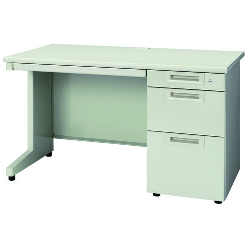 ラインナップ豊富なスチールデスクシリーズ「RJデスクⅡ」奥行700mm/片袖机(引出しDタイプ)幅1200mm/エルグレー。天板奥行は標準サイズの奥行700mmタイプ。引出下段はB4・A4サイズの収納に対応。センタートレーに鍵は付きません。省スペースにも対応するコンパクトサイズの600mmタイプもあります。