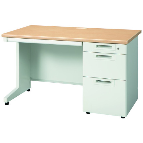 ラインナップ豊富なスチールデスクシリーズ「RJデスクⅡ」奥行700mm/片袖机(引出しDタイプ)幅1200mm/ホワイトメープル。天板奥行は標準サイズの奥行700mmタイプ。引出下段はB4・A4サイズの収納に対応。センタートレーに鍵は付きません。省スペースにも対応するコンパクトサイズの600mmタイプもあります。