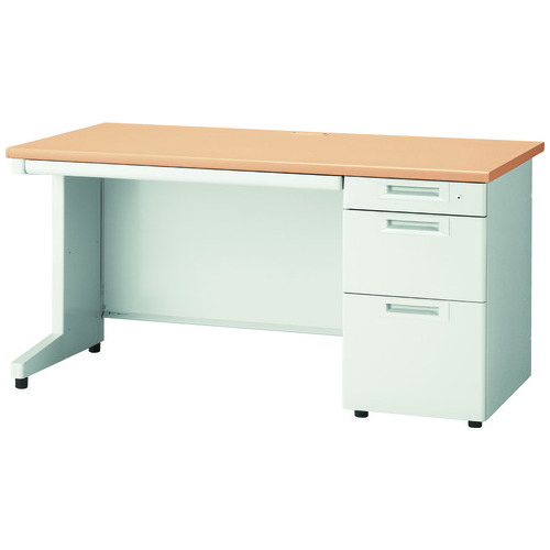 ラインナップ豊富なスチールデスクシリーズ「RJデスクⅡ」奥行700mm/片袖机(引出しDタイプ)幅1400mm/ホワイトメープル。天板奥行は標準サイズの奥行700mmタイプ。引出下段はB4・A4サイズの収納に対応。センタートレーに鍵は付きません。省スペースにも対応するコンパクトサイズの600mmタイプもあります。