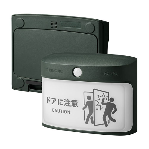 扉の向こうに人がいることをお知らせして、扉の開閉による衝突を防ぐ「扉につけるお知らせライト」の屋外対応タイプです。ライトとブザーでしっかりと注意を促します。IP55相当の防塵防水仕様で、屋外のほこりや雨にも安心。