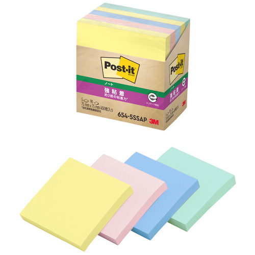 Post-it強粘着75×75mm 654-5SSAP 4色